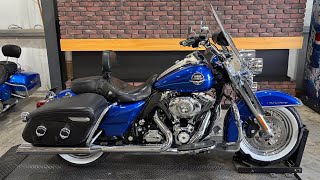 Rolling nostalgia you can ride over the horizon, the Road King® Classic incorporates styling elements from the past in a touring motorcycle with modern technology. The 2009 Road King® Classic retains its 16-inch front and rear laced steel wheels and wide-whitewall tires. Tooled leather covers the seat trim and the leather-covered saddlebags. Touring features include a large detachable windshield, auxiliary passing lights, and standard cruise control. Two-tone fender graphics are new for 2009, and a new license bracket locates the plate above the tail lamp.